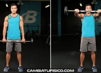 Las elevaciones frontales con barra trabajan al máximo la porción anterior del deltoides.