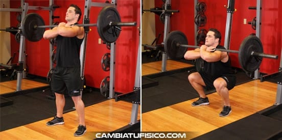 Necesitamos elegir ejercicios que impliquen a gran cantidad de músculos. Yo sugiero la sentadilla frontal.